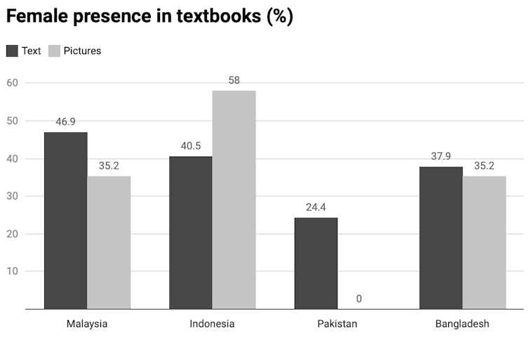 Meskipun buku pelajaran di Indonesia yang kami teliti menampilkan kedua gender secara lebih setara dibandingkan ketiga negara lainnya, terutama Pakistan dan Bangladesh, analisis kami menunjukkan masih terdapat banyak bias terkait peran gender yang ditampilkan.